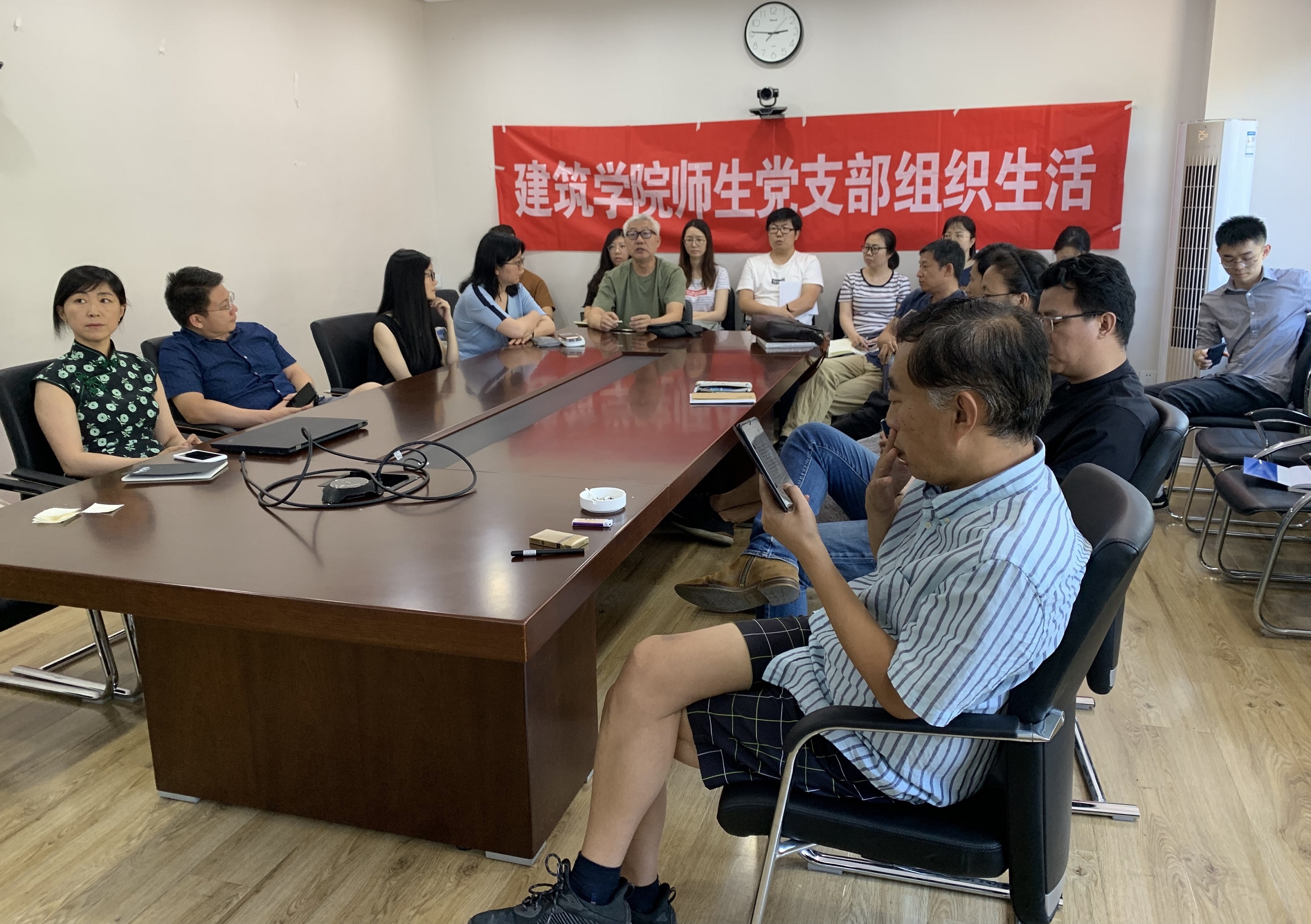 7月1日下午2:00,在建筑学院第二会议室,为庆祝建党98周年,建筑学教师党支部与17级硕士学生党支部共同开展“不忘初心使命,传承教育筑梦”主题生活会。与会教师有荆子洋、盛海涛、宋祎琳、杨崴、苑思楠、张清、张昕楠、赵娜冬、郑越、张安晓,与会学生有兰博、高原、韩亚军、黄静雯、赖筱书、刘洋、王晨、王宏伟和辅导员田晓媛。