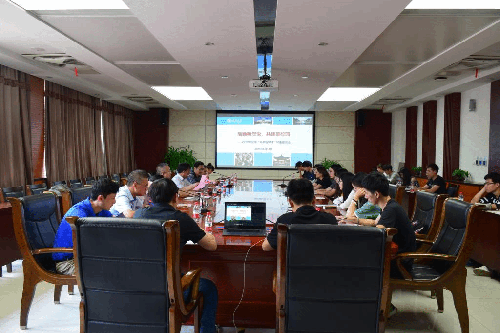 本站讯(通讯员 付永兴)为进一步落实“师生为本、用心服务”的工作理念,突出“为学生服务”的宗旨,多渠道听取学生对学校后勤系统工作的意见和建议,6月14日下午,2019毕业季“后勤听您说”师生座谈会在北洋园校区指挥部101会议室召开,天津大学副校长张凤宝出席会议,资产与实验室管理处、基建规划处、保卫处、后勤保障部、信息与网络中心、校医院的相关负责人以及22名学生代表参加了会议。