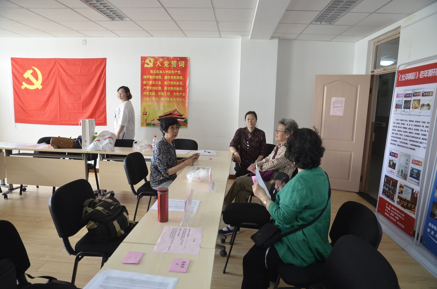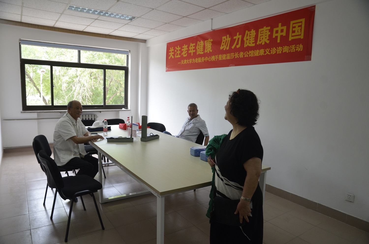 本站讯(通讯员 王小轩)为更好关爱老同志身体健康、搭建为老服务平台,5月24日,离退休工作处、为老服务中心联合星健温莎长者公馆,在老年活动中心面向离退休老同志开展义诊咨询活动。离退休工作处处长汪菲、副处长王岩妍,为老服务中心主任何名全、常溥文,老年活动中心副主任刘炳奎以及工作人员和学生志愿者参加了活动。星健温莎长者公馆项目的几位工作人员也全程参与了活动现场服务。