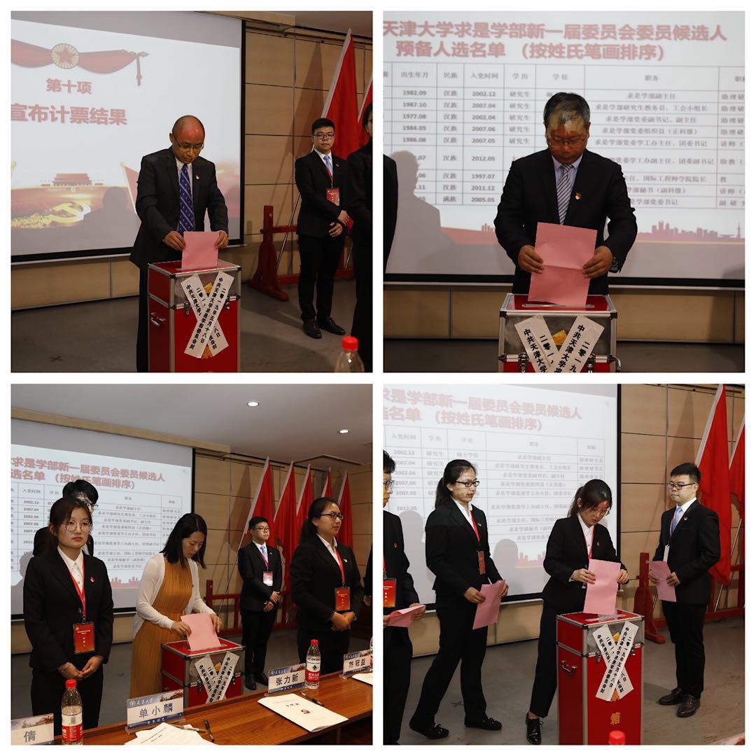 按照《中国共产党章程》和《中国共产党基层组织工作暂行条例》,采用无记名投票方式和差额选举的办法,大会选举产生中共天津大学求是学部新一届委员会委员(以姓氏笔画为序):于倩、王玮、纪颖、时子庆、 陈冠益、陈维、单小麟。