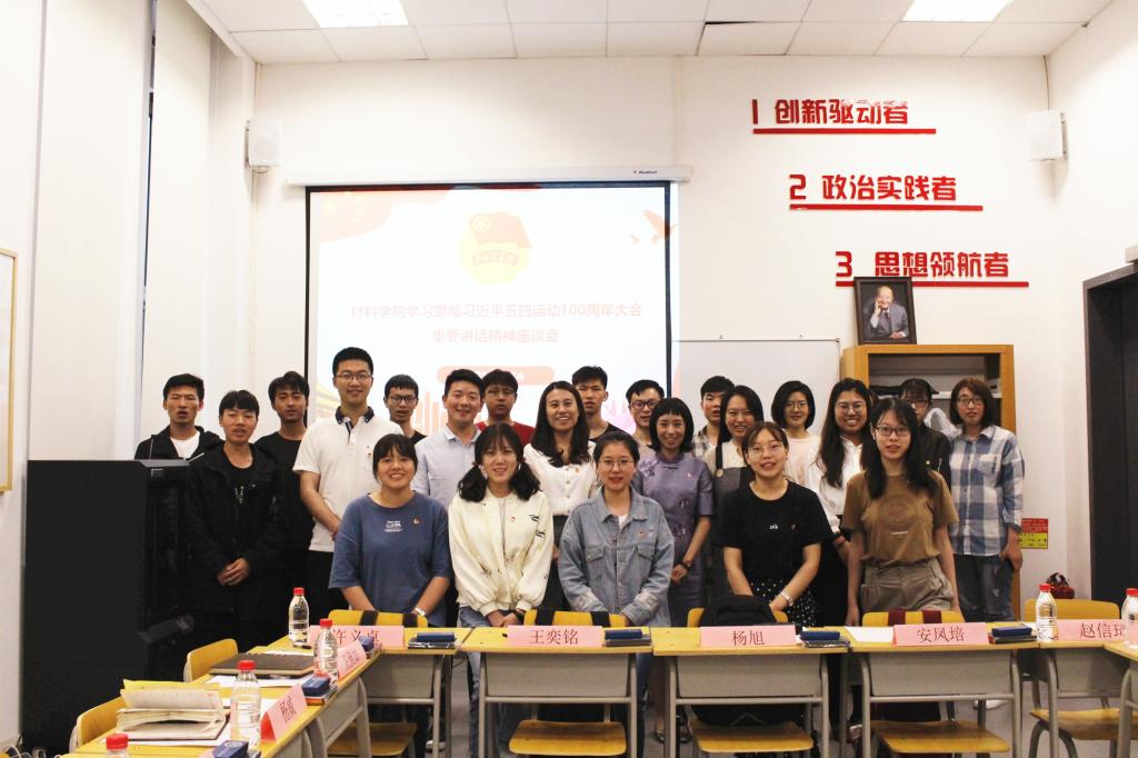 (通讯员王颖 杨威 摄影陈黾杉)5月14日下午,材料学院学习贯彻习近平总书记在纪念五四运动100周年大会上重要讲话精神座谈会在31教124召开,天津大学团委书记吕静、材料学院党委副书记王莹作为嘉宾参加本次座谈,材料学院团委书记王颖、团干部车兴宇、杨威、徐福圣、卫雅如及本科生、硕士生团员代表共26人参加会议,会议由2017级材料成型及控制工程二班团支部书记李艳艳主持。