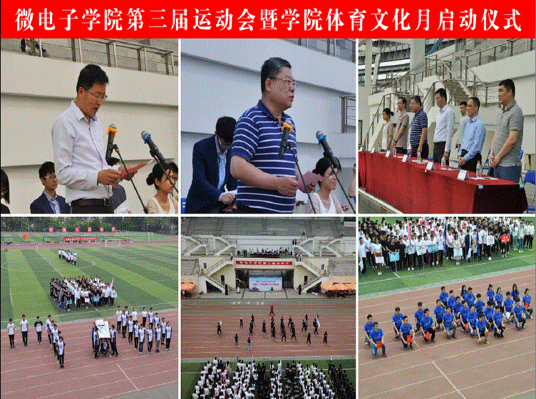本站讯(通讯员 徐义桐)5月10日下午,天津大学微电子学院第三届运动会暨学院体育文化月启动仪式在卫津路校区体育场举行。微电子学院院长马凯学,党委书记杨晋生,副院长徐江涛、刘强,党委副书记韩旭,学工办副主任、团委副书记王玥,辅导员尹明、徐义桐,专业教师代表以及近500名学生共同参加运动会开幕式。