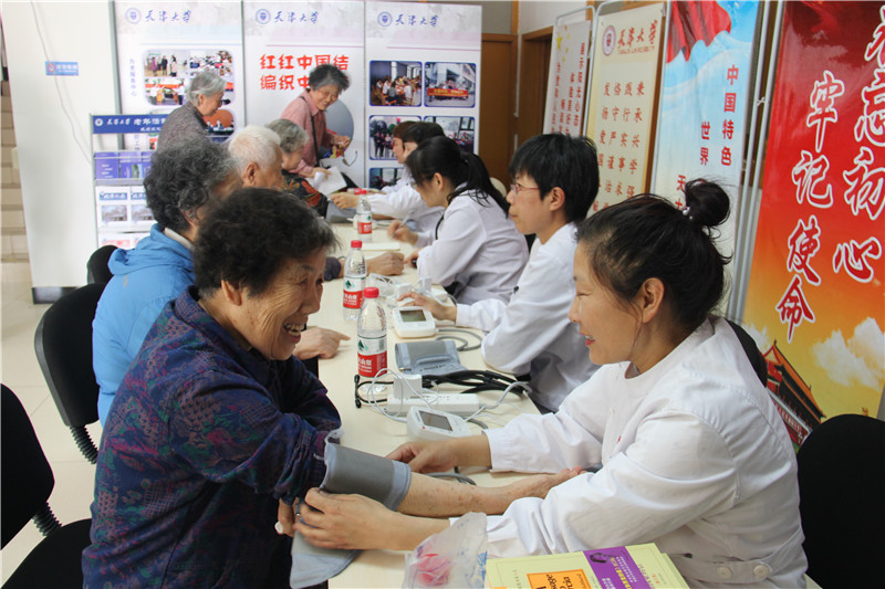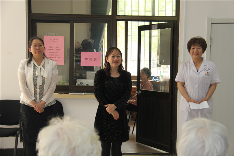 活动首先由小幼医党委副书记、工作部副部长刘津致辞,刘津副书记首先表达了感谢,感谢张校对小幼医、校医院工作的鼎力支持。感谢离退休处、为老服务中心、老年活动中心领导们长期以来在服务离退休教职工对校医院工作的支持,她在此代表小幼医党委、工作部对大家表示由衷地感谢。之后对护士姐妹们致以节日的问候与亲切的祝福,护理工作在医院工作中发挥着非常重要的作用,小幼医党委一直关心护士的培养发展,注重医院整体护理水平的提高,希望大家在国家建设健康中国的背景下,要勇于面对压力与挑战,克服困难、齐心协力,继续发扬南丁格尔精神,以高质量的护理服务和技术建设健康天大,做好全校教职员工的医疗保障服务工作。最后刘津副书记也借此义诊活动契机表达了对校医院未来的期待,向广大离退休教职工介绍了校医院近期的修缮工作,她表示修缮后的校医院将优化科室设计,创造更良好的就医环境和更人性化的就医流程,同时加大特色科室建设,中医和康复理疗,针灸、拔罐、艾灸等项目会陆续开展,与胸痛中心、天津医院医联体专家门诊也会陆续开展,针对教职工特别是离退休职工对于眼科需求,已经购置眼科设备,并将与相关医院建立眼科医疗体。在未来的工作中,校医院将不断努力提高医疗质量和医疗服务水平,服务好教职工,向下半年要迎来的祖国的70华诞、124周年年校庆献礼。最后刘津副书记预祝此次活动获得圆满成功。