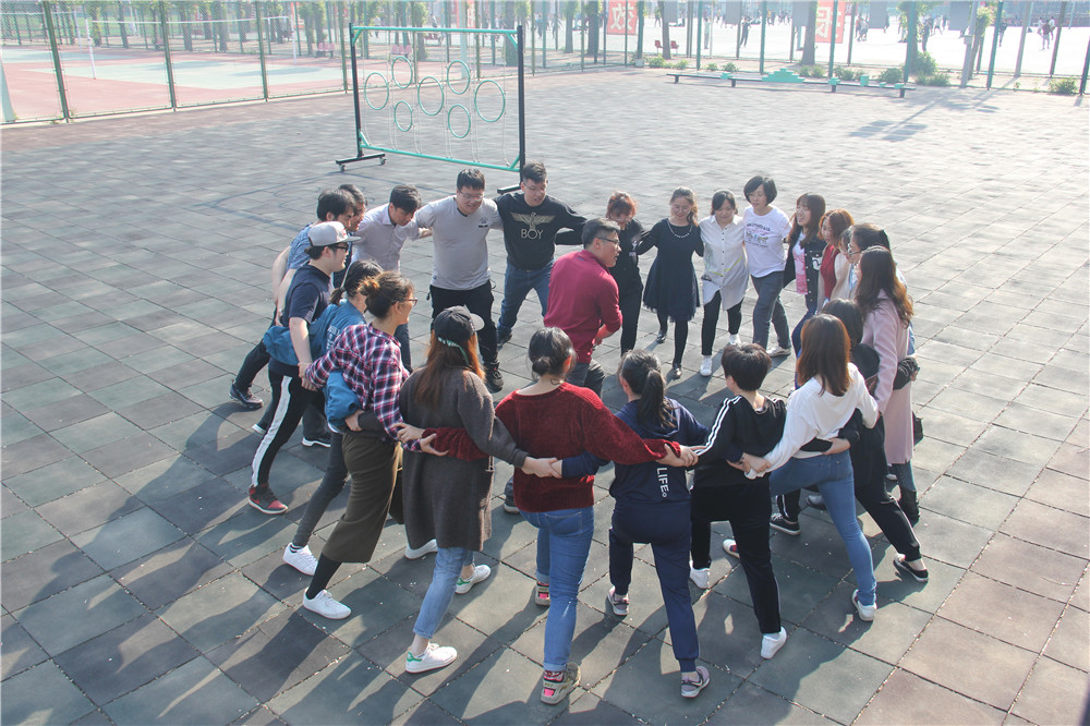 之后,青年教工来到天津大学体育馆集合参加团体辅导,在素拓师吴老师的带领下,进入热身环节,通过“老师说”“快速反应”等小项目,协调配合,提升队伍快速应变能力,不仅愉悦了身心,更增加了队伍的凝聚力,破冰游戏活跃了现场气氛。随后,队员们分为2个小队,每队为了一个共同的任务,集思广益编创了属于自己队伍的队名、logo、队歌、队型。并在之后的队伍展示中,向其他队的队友们介绍自己,加深了队员间的了解。团队成员团结一心、相互鼓励,最终全部完成任务。
