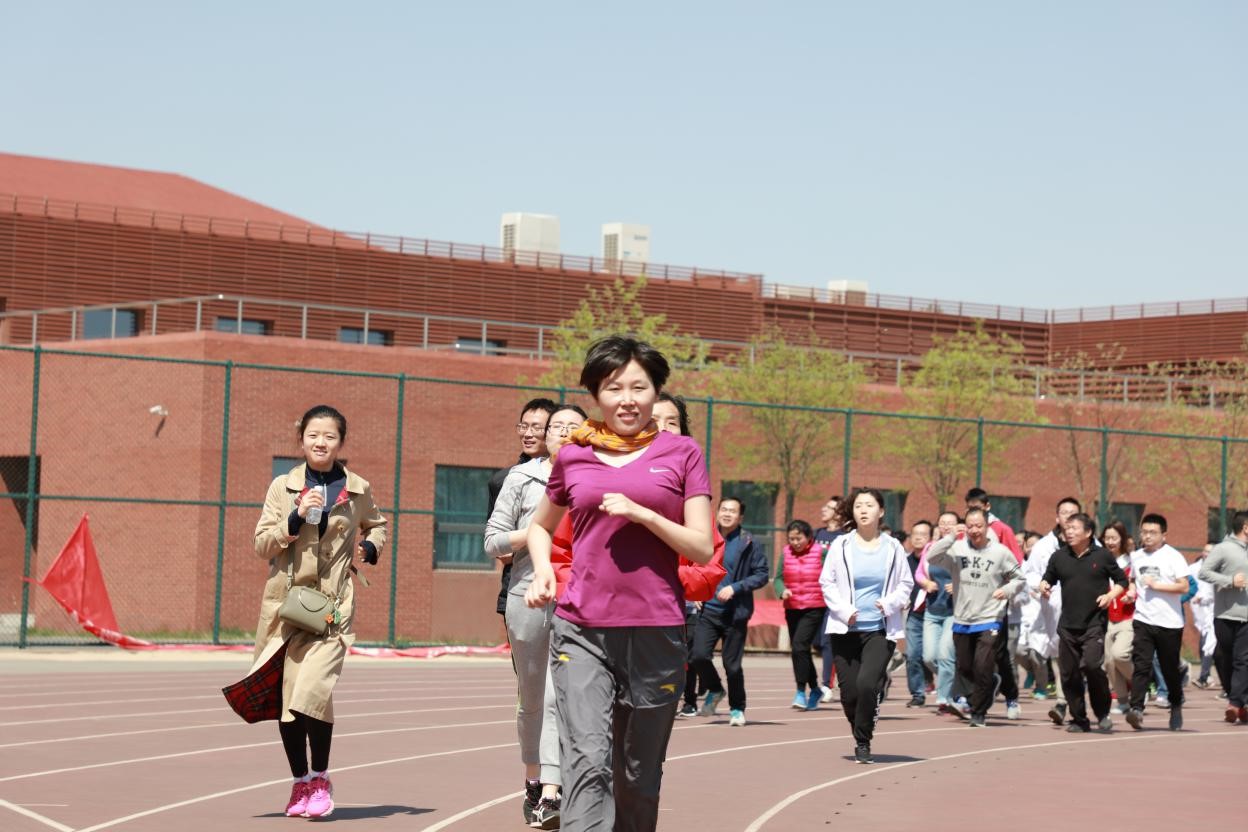 学院领导与教师带领全体运动员进行热身跑,用实际行动激发同学们的运动热情与奋斗精神。