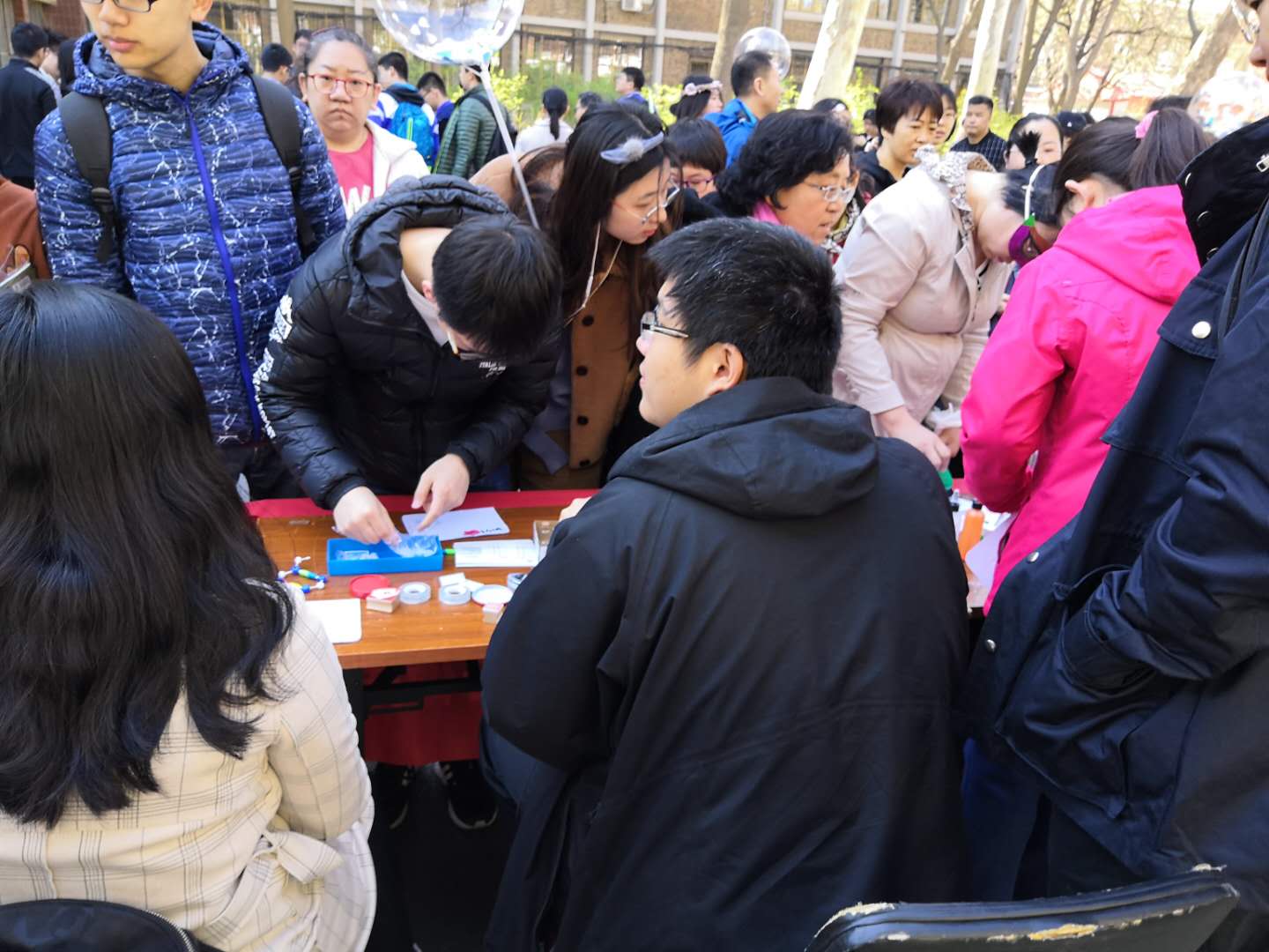 在生命学院科协摊位前,学院展出了海棠花装饰品及部分海洋生物标本,组织与生物知识相关的猜谜游戏、水果电池制作等活动,吸引了众多游客前来互动参与。同学们协助参与者完成游戏,并耐心地讲解专业知识方面,让参与者学有所获,乐在其中。这些多彩的活动引导参与者走进自然科学,为他们展示了宏观世界里丰富多彩的生物,吸引了众多游客前来参与,反响十分热烈。