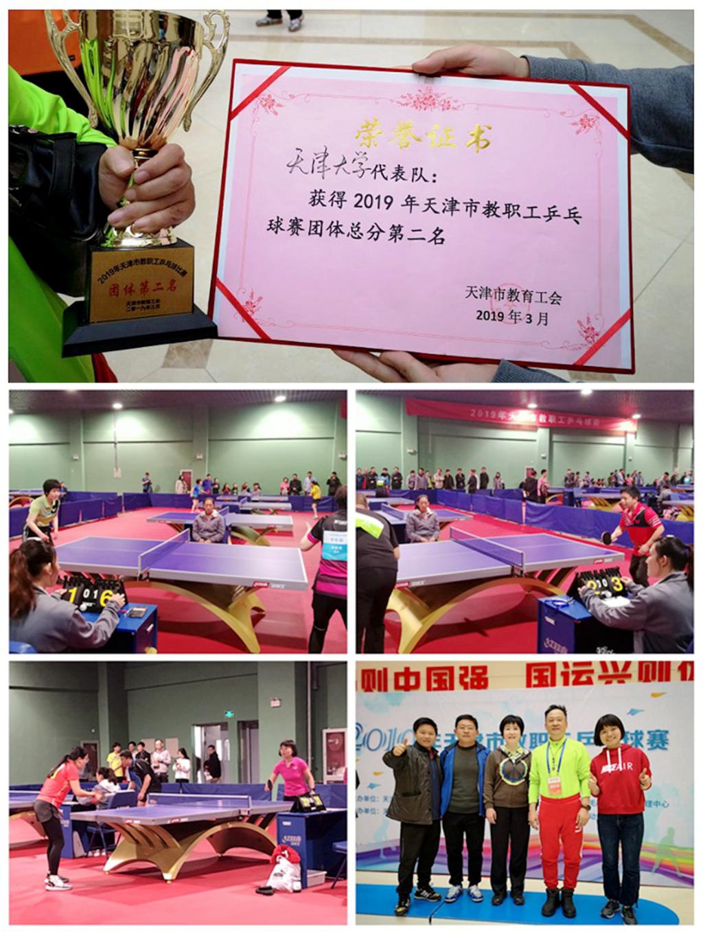 本站讯(通讯员 温锌勇)3月23日,由天津市教育工会主办的2019年天津市教职工乒乓球赛在天津体育学院举行,天津大学代表队在比赛中获得团体总分第二名。