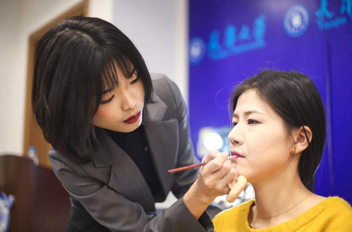 讲座邀请津南电视台特邀化妆师艳子老师进行日常护肤、彩妆以及化妆品使用知识专题讲解。艳子老师在美容化妆和美妆讲座方面从业多年,积累了丰富的经验。她现场进行日常妆容师范,直观形象地给老师们讲解日常护肤中补水的重要性以及如何打造立体眉型、通过腮红改变脸型等知识。老师们现场咨询问答,互动积极热烈。