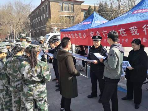 本站讯(通讯员 王首道)为提高同学们安全防范意识,增强自我保护能力。保卫处于3月16日上午8时许联合学府街、同砚路派出所同时在卫津路校区北洋广场和北洋园校区太雷广场开展安全宣传活动。