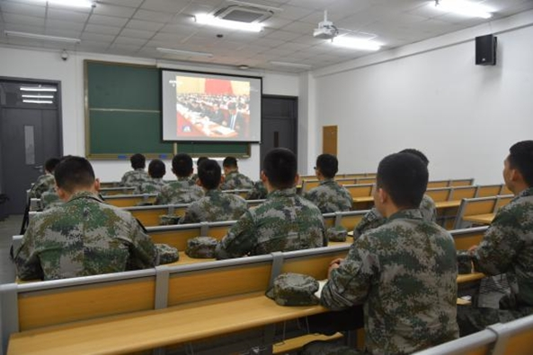 本站讯(通讯员 王伟 郭博文)2019年3月5日上午,天津大学国防生分校区集中观看中华人民共和国第十三届全国人民代表大会第二次会议开幕会直播,认真聆听政府工作报告。