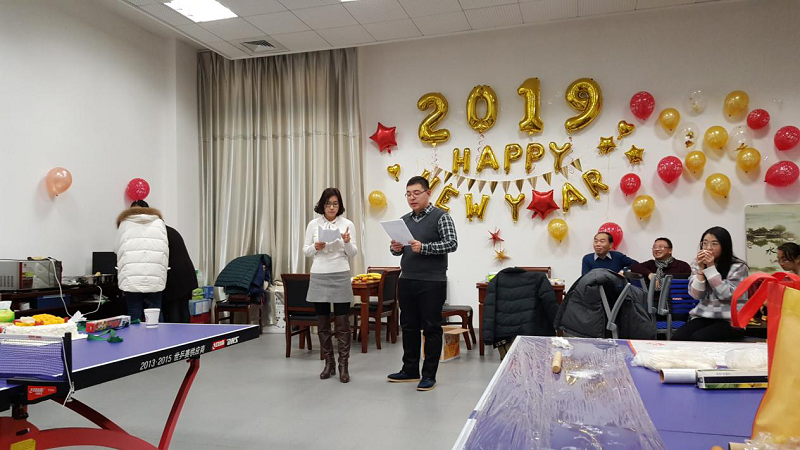 本次元旦联欢会由学院工会组织筹办,80余名教师员工欢聚一堂,共同迎接2019新年的到来。工会主席袁兵主持,党委书记刘昌龙、副院长唐向阳、副书记王作金、教代会主任吴萍与教师们一起参加了本次活动。