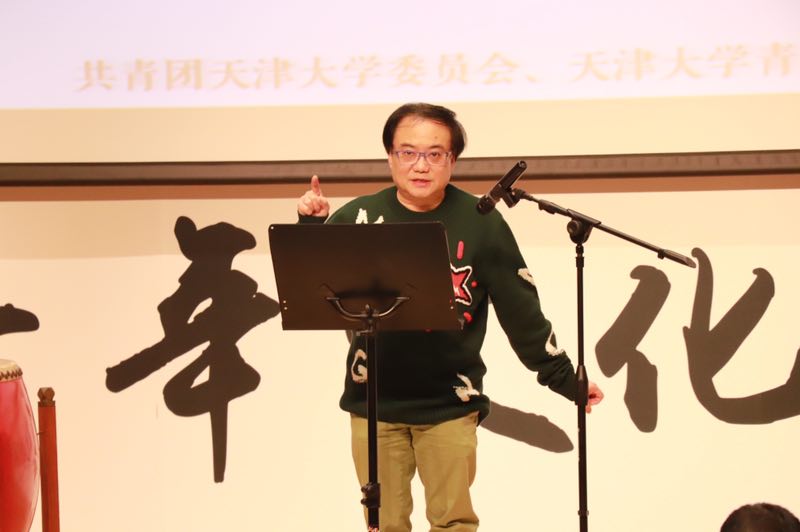 本站讯(学生记者团记者李璐 摄影刘鑫慧) 12月25日下午2时,著名作家温瑞安做客天津大学青年文化论坛,以“天在做,人在看”为主题,在郑东图书馆举办了一场精彩的讲座,谈科技升级对“侠文化”的影响,带领天大学子走入新世纪的传奇武侠世界。