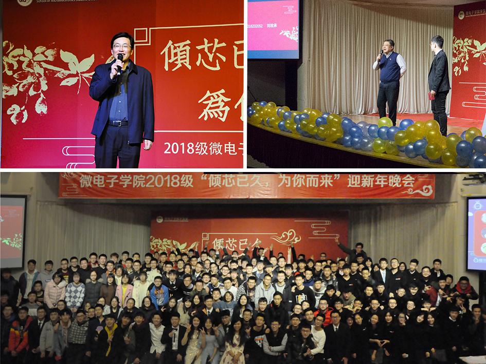 开场舞之后,微电子学院院长马凯学为晚会致辞。马院长首先表达了对学院师生的新年祝福,感谢学院师生为学院发展做出的贡献。然后回顾了2018年国家、天大、学院发生的大事,特别集成电路事业的发展受到全国瞩目,上升到了前所未有的高度,借此微电子行业快速发展的契机,希望同学们在大学阶段夯实专业基础,立志成为具有家国情怀、全球视野、创新精神和实践能力的微电领域卓越人才。