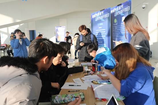 在“潍柴动力校园科技日”主题区域,来自各学院学生科技协会的同学们都带来了自己最新制作的课外创新科技作品。校团委的负责教师和在场学生向潍柴动力企业嘉宾一行详细介绍了我校学生科技工作的开展情况,以及每件展品的设计原理并进行现场演示,其中机械学院科技协会制作的智能车机器人在现场还原了机器人大赛的精彩对决。