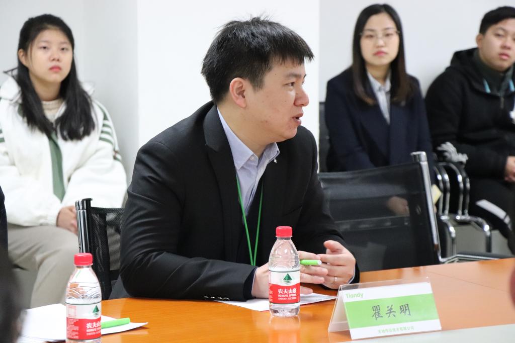 “天地伟业”高级副总裁CTO薛超带领企业团队曾获得天津市科技进步一等奖的获得者,对于企业的创新路线,他说道:“我们公司坚持自动化的检测路线,减少人工参与度,核心工艺实现全自动化调试、全自动化结果认证,通过数字化监测确认最终效果。有一定的经验积累和知识储备,才能实现创新,才能实现突破。”薛超鼓励同学们在大学努力积累专业知识,培养创新能力,提升自己的竞争力。