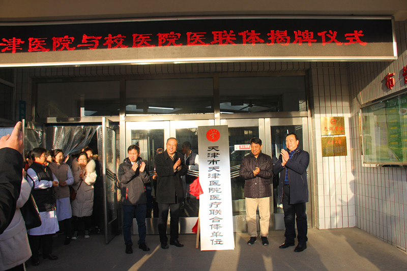 本站讯(通讯员 夏争芳 赵春丽)12月6日,天津医院与天津大学医院医联体揭牌仪式在校医院隆重举行。天津大学校长助理张力新、天津医院院长马信龙、天津医院副院长徐卫国、南开区卫健委主任纪明章、天津大学小幼医党委书记赵翠云、天津大学小幼医党委副书记刘津、天津大学人事处副处长张鹏、学工部副部长李静松、离退休工作处副处长李春意、天津医院近二十位专家、校医院领导班子及教职工代表出席了揭牌仪式。仪式由校医院院长张长福主持。
