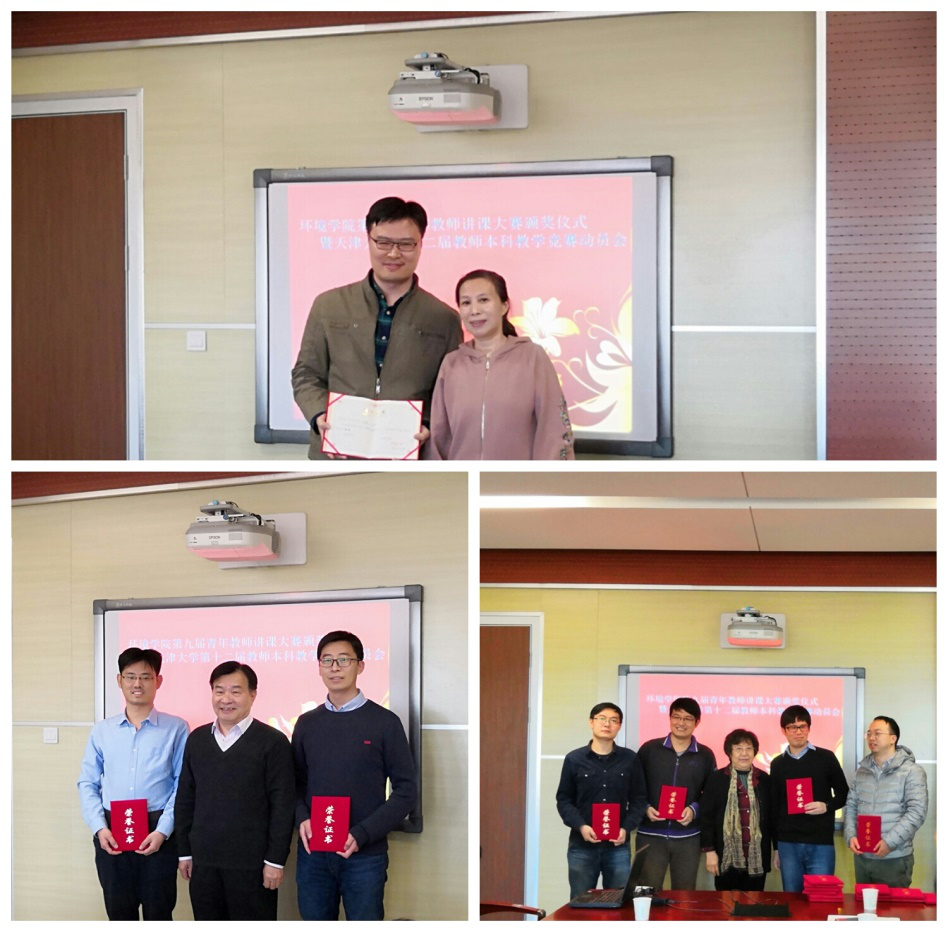 本站讯(通讯员 赵金娟 胡宏远)为进一步调动广大教师的教学积极性,激励教师加强教学研究,提高教学质量,天津大学第十二届教师本科教学竞赛动员会暨环境学院第九届青年教师讲课大赛颁奖仪式于11月22日在环境学院会议室进行。会议由环境学院副院长刘庆岭主持,教务处宗英、环境学院教学督导代表及获奖教师出席会议。