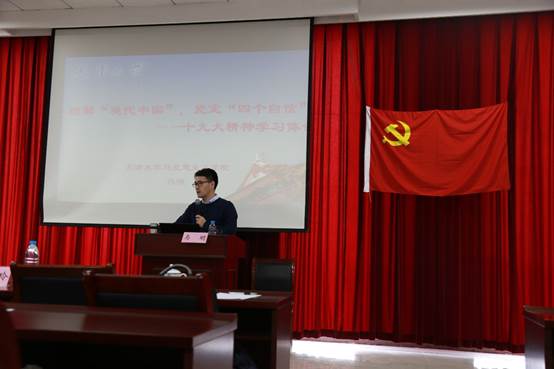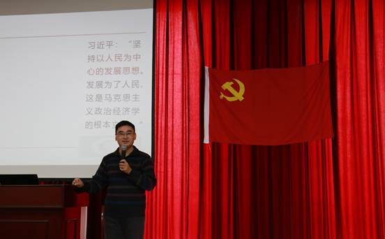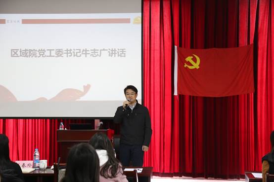 区域院党工委书记牛志广为培训致辞。他首先对从新校区专程赶来进行授课的马克思主义学院张宇老师和马明老师表示了热烈的欢迎和衷心的感谢。随后,他从自身学习体会出发,向参加培训的学员强调了理论学习对于一名党员的必要性和重要性。他说,理论学习和集中培训是一个“解渴”的过程,要珍惜学习机会,拓宽眼界,努力提高自身的政治素养和业务素质,认真参与党组织生活。同时,他勉励全体党员干部要高举习近平新时代社会主义思想大旗,关心时事政治和国家大事,坚定不移跟党走;要抓住时代发展的“主流”,才能在新利18网址登录