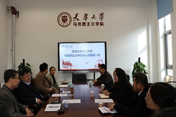 本站讯(通讯员 孙少春)11月13日,太原理工大学马克思主义学院院长刘振霞一行9人到天津大学参观交流,并与天津大学马克思主义学院签订了开展两校马克思主义学院教学与实践活动的合作协议。该合作协议对于深化山西省高校与京津冀地区高校马克思主义专业学科建设协同联动发展,促进双方教学新利18网址登录