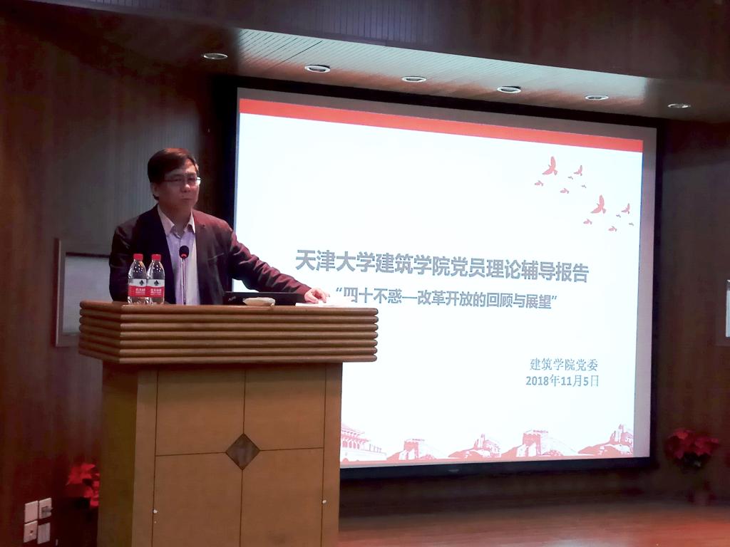 本站讯(通讯员 王卫娜)2018年是中国改革开放40周年,为了深入学习贯彻习近平新时代中国特色社会主义思想、党的十九大精神,进一步做好学院党员理论培训教育工作。11月5日下午,建筑学院党委举办了“四十不惑—改革开放的回顾与展望”理论辅导报告。