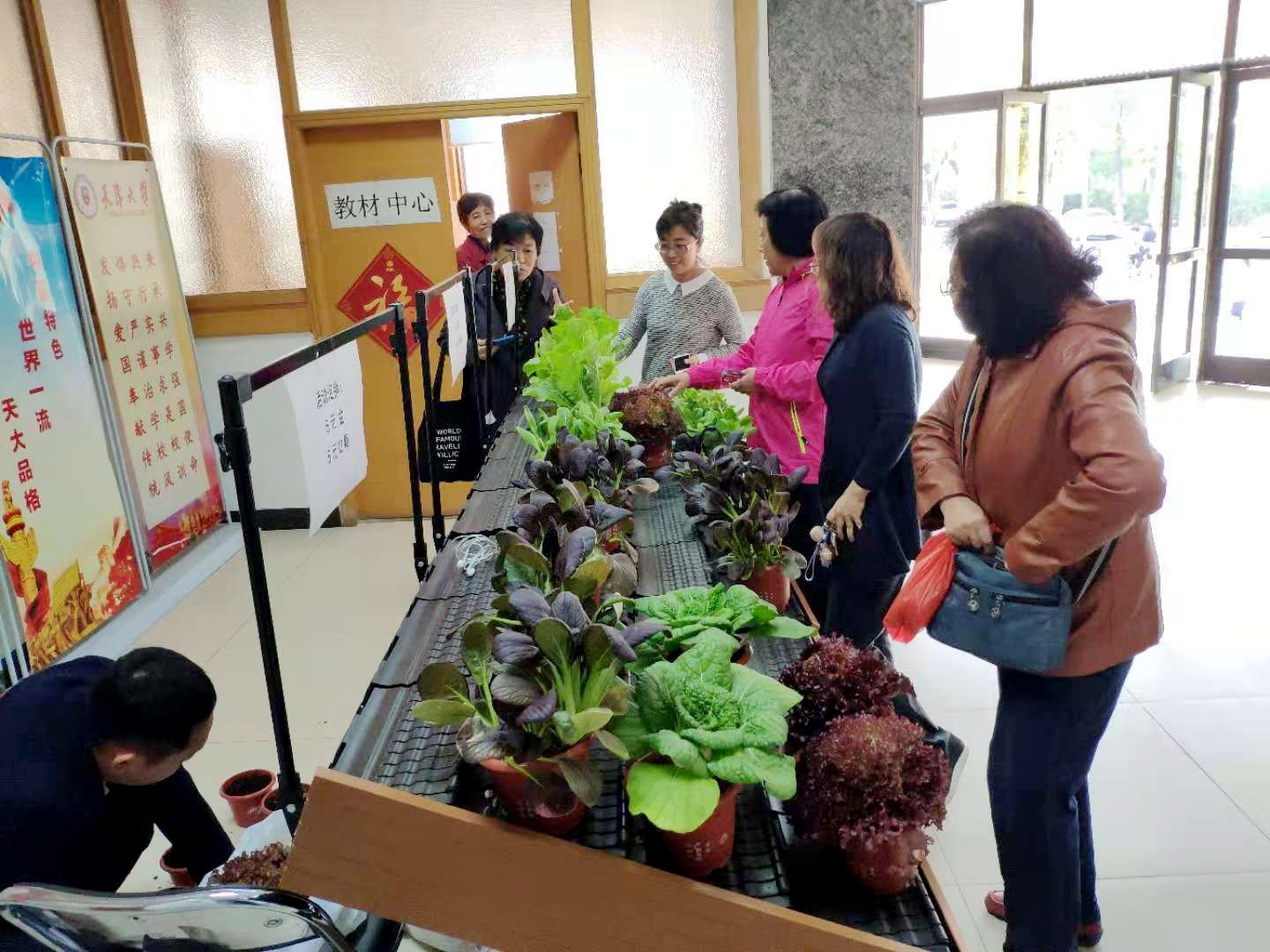 盆栽蔬菜外形美观、健康无公害,既可供室内观赏,又可供采摘食用,得到了广大离退休教职工的普遍欢迎。他们纷纷来到展销现场进行选购,将这些质优价廉的“放心菜”带回自己的餐桌上。