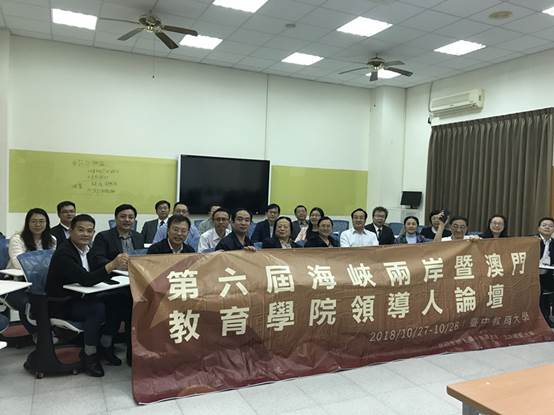 本站讯(通讯员 田君)10月27日、28日由台中教育大学承办的“第六届海峡两岸暨澳门教育学院领导人论坛”在台中举行。此次论坛的主题为“新时代的教师教育”,旨在以前瞻、创新的构想,通过两岸教育学院领导人集体智慧,探索新时代教师教育的方向、路径和策略。有近50所高校的教育学院院长、代表,参加本次论坛,其中包括北京师范大学、华东师范大学、东北师范大学、厦门大学、西南大学、台湾中正大学、台湾政治大学、澳门大学等高校代表,我院闫广芬院长、夏军副院长应邀出席本届论坛。