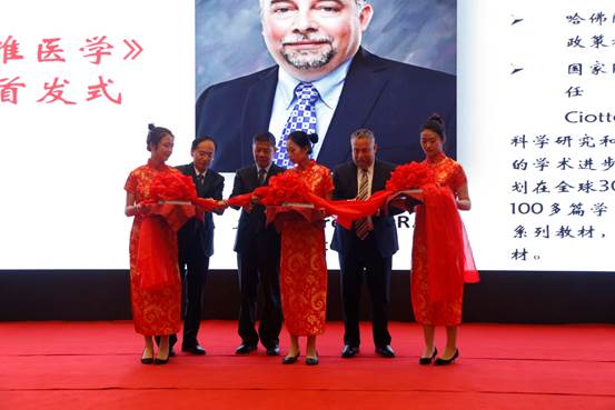 人民卫生出版社社长郝阳在会上进行了简短致辞,他表示该书既是一本优秀的教材,也是一本非常实用的工具书。Ciottone感谢人民日报社购买本书的英文版权,他表示,非常高兴能够与侯世科教授团队进行合作,把自己专著的推向中国。郝阳、侯世科和Gregory Ciottone一同为新书发布进行了剪彩。来自中国大陆以及香港、台湾地区的近千位专家、学者参加了本次活动。许多行业专家在剪彩仪式结束后表达了购买意愿。