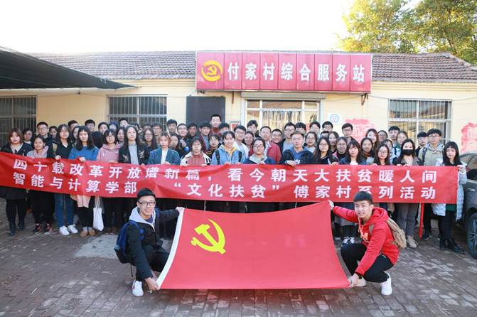 本站讯(通讯员 吴自强)为纪念改革开放四十周年,进一步加大脱贫攻坚宣传力度,丰富脱贫攻坚方式方法。10月27日,天津大学党委学工部、校团委、智能与计算学部联络学校结对帮扶村——静海镇付家村,与驻村工作组共同开展“文化扶贫”系列活动。智能与计算学部2016级本科生党支部,2018级硕士生第二党支部,部分预备党员,2016级、2017级、2018级动画团支部,共约100人参与此次主题活动。