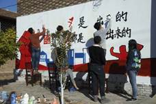 活动当天,智能与计算学部2016级本科生党支部组织2016级、2017级、2018级动画团支部的同学们,完成了6面共计约76平米的文化墙的创作,此次创作以“改革开放四十年”、“美丽中国”、“发展中国”、“时代中国”、“幸福中国”、“奋斗中国”为主题,用色彩鲜明、融入天大特色的画作展现改革开放的成果,传递脱贫攻坚的正能量。六面文化墙象征着新一代学子对社会主义价值观的积极实践,也温暖着付家村人民的心。