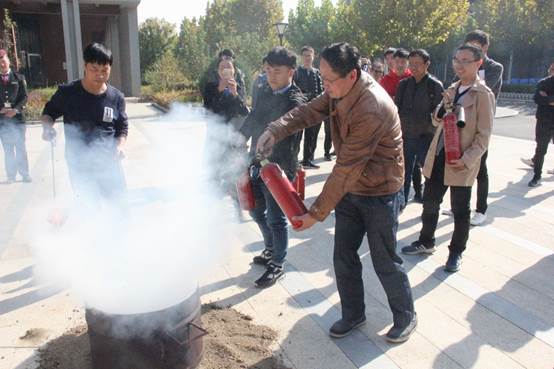 讲座结束后,所有参会师生到43楼南门广场开始进行灭火器的操作演练。在保卫处老师的操作演示下,所有师生都认真的完成了灭火器的使用演练。