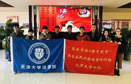 2017年以来,天津大学在肩负培养法律人才和法律研究重任的同时,派出师生组成法治宣传服务队,通过实地宣讲、新媒体宣传及其他形式服务,深入到农民工集中的乡镇、街道、社区及工地开展宣传,内容涵盖习近平新时代中国特色社会主义思想、社会主义核心价值观、法律法规及政策、法律救济方法和途径等,充分体现了新时代高校的社会担当。