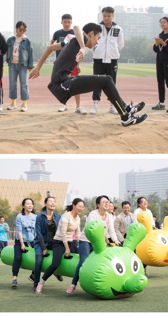 本届运动会学生组共设有16项个人及团体项目,除了男女100米、200米、400米、女子800米、男子1500米、跳高、跳远、实心球等传统项目外,还精心设置了4×100米、4×400米的班级迎面接力赛,旨在激发调动更多同学参与体育运动,提高集体凝聚力,展现精仪学子团结拼搏的精神。赛场上的同学们激情竞赛,观众席上的同学们奋力呐喊助威,广播播报的加油稿为运动员们增添了动力和信心,更充分体现出精仪学子们的青春热情与团结互助。本次比赛还特别设置了教工组田径项目比赛和多项亲子趣味活动,老师们乐享运动、勇于拼搏、团结融洽的积极风貌为同学们树立了良好榜样。