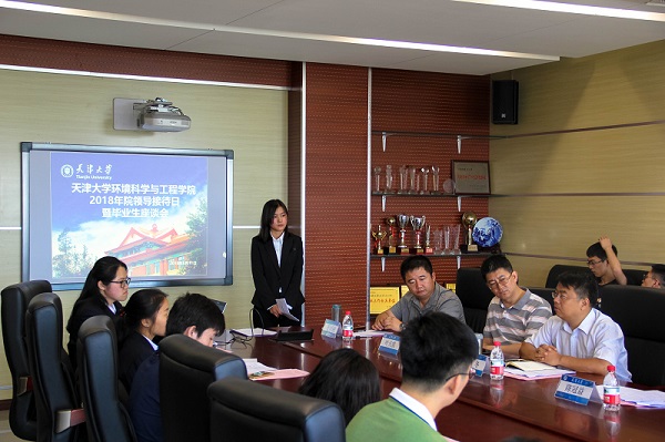 本站讯 (通讯员 胡宏远)6月11日,环境学院院领导接待日暨2018届毕业生座谈会在43楼B506会议室举行。会议旨在拓宽学院与学生之间的沟通渠道,加强学院领导与学生之间的交流沟通,提高学生主动参与学院管理的意识,同时收集毕业生对学院人才培养、发展方向、培养方案等方面的建议。环境学院院长陈冠益,党委副书记、副院长杨冬,环境科学与生态系主任毛国柱,环境工程系副主任张光辉,建筑环境与能源应用工程系副主任叶天震,环境学院辅导员王杨、洪文涛以及环境学院学生代表、2018届毕业生代表30余人参加了会议。