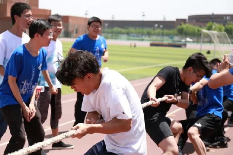 拔河比赛将运动会推向高潮,激烈的加油呐喊声响彻整个操场。2017级机械工程一队与化工材料一队势均力敌,机械工程一队的同学坚持拼搏, “一!二!一!二!” 默契地喊着口号,一起使劲,在胜负难分的时刻,大家毫不退却,咬紧牙关,坚持到底,最终在处于下风的状态下逆转了比赛局势,不论是场上队员还是场下啦啦队个个斗志昂扬,用他们的汗水为我们诠释着团队合作和坚韧不拔的精神。