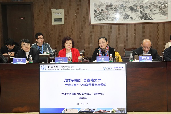 傅利平以“以越罗蜀锦、育卓伟之才”为题,介绍了天津大学MPA的发展理念与模式。2000年,经国务院学位办批准,天津大学成为国内首批24所开展公共管理硕士(MPA)教育的试点院校之一。MPA项目以“培养掌握先进的分析技术与方法,诚信、负责、有影响力的公共管理者”为使命,依托于天津大学管理与经济学部的优质学术资源,在多年的教学新利18网址登录