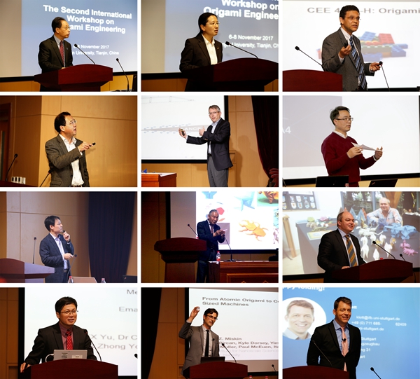 本站讯 11月6日至11月8日,第二届国际折纸工程研讨会在天津大学北洋园校区第37教学楼宏远报告厅召开。来自中国、美国、英国、德国、澳大利亚、日本和韩国的11位国际折纸工程领域专家分别从艺术、数学、物理、力学、机构学、机械工程、土木工程、超材料等方面的折纸研究进行了精彩的专题报告。本次研讨会吸引了来自清华大学、上海交通大学、西安交通大学等国内外30个新利18网址登录