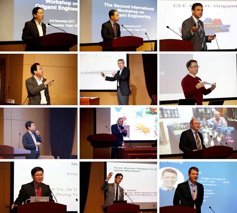 本站讯(通讯员 马家耀 杨富富)2017年11月6日至11月8日,第二届国际折纸工程研讨会在天津大学北洋园校区第37教学楼宏远报告厅召开。来自中国、美国、英国、德国、澳大利亚、日本和韩国的11位国际折纸工程领域专家分别从艺术、数学、物理、力学、机构学、机械工程、土木工程、超材料等方面的折纸研究进行了精彩的专题报告。本次研讨会吸引了来自清华大学、上海交通大学、西安交通大学等国内外30个新利18网址登录