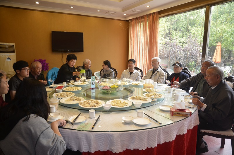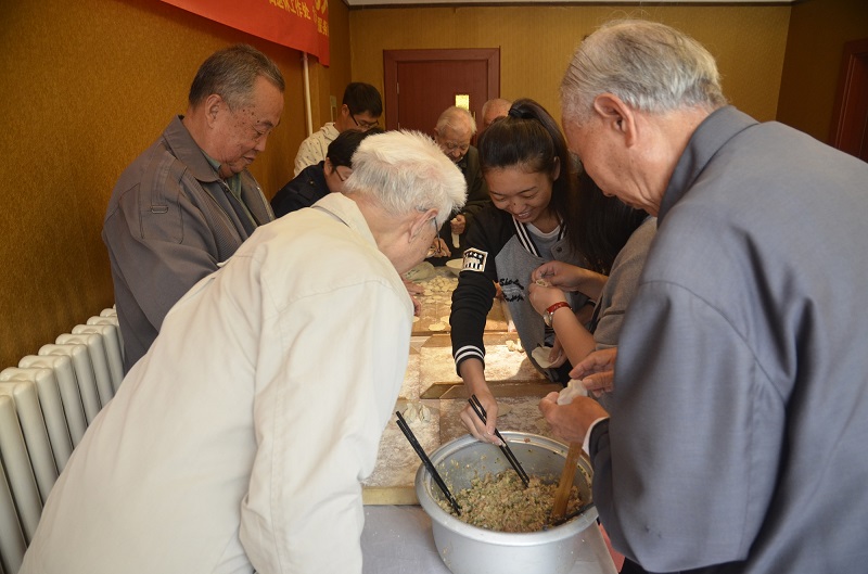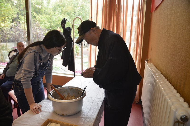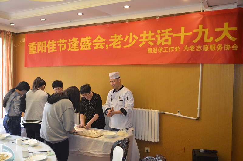活动邀请了高龄或独居的离退休老同志、学生志愿者以及离退休工作处工作人员、后勤保障部会议接待中心工作人员一起包饺子。离退休工作处处长汪菲代表全体工作人员和学生祝老同志们重阳节快乐。