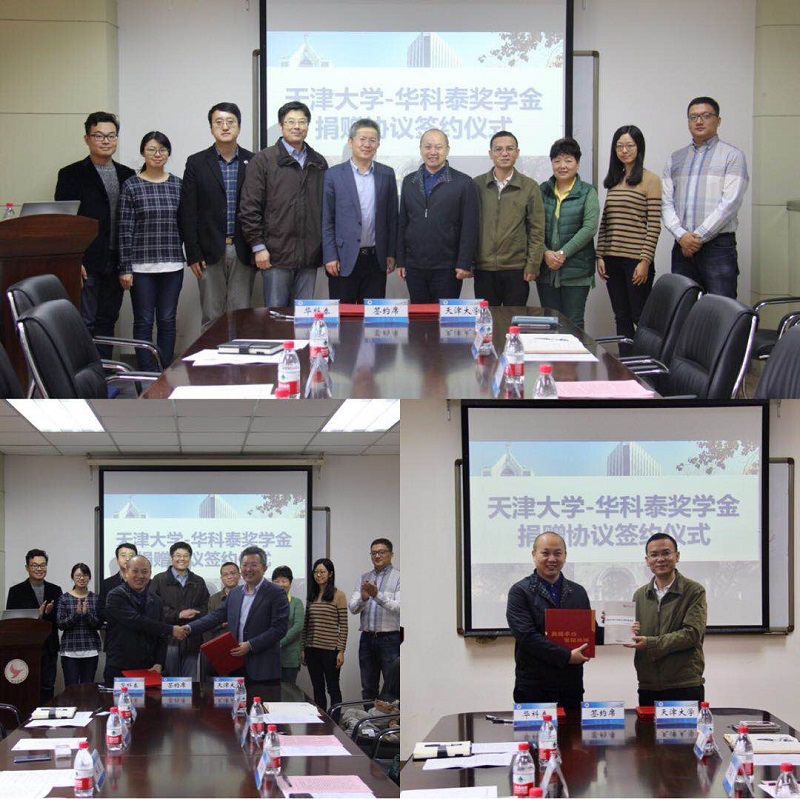 本站讯(通讯员 单亦鹏)10月25日,天津大学——华科泰奖学金捐赠签约仪式在卫津路校区精仪学院会议室举行。北京华科泰生物技术有限公司副总经理林斯,天津博硕东创科技发展有限公司总经理杜康,天津大学校友与基金事务处处长潘峰,精仪学院党委书记王海龙,精仪学院办公室主任李清出席仪式,仪式由精仪学院党委副书记张宇主持。