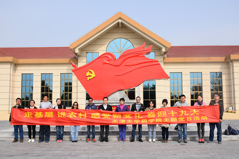 本站讯 2017年10月14日上午,天津大学药学院教工党支部来到宝坻区尔王庄镇冯家庄村,在村党史馆(基层党员干部教育基地)开展“走基层 进农村 感受新变化 喜迎十九大”主题党日活动。参加党日活动的有药学院党委副书记杜云飞、教工党支部书记王征及教工支部党员、入党积极分子、外籍教师代表等十余人。