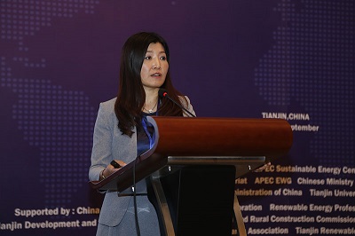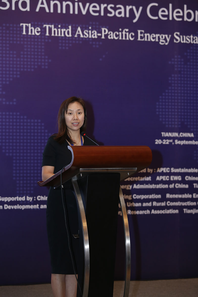 国家能源局国际合作司综合处处长魏晓威致辞,她指出,APEC可持续能源中心作为中国政府主导的第一个能源国际合作机构,肩负着为亚太区域能源国际合作提供服务和为我国可持续发展提供智力支持的双重任务。