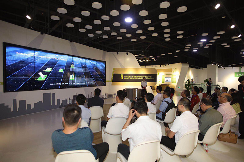 22日,与会人员赴天津中新生态城进行技术考察,参观了全球能源互联网项目。