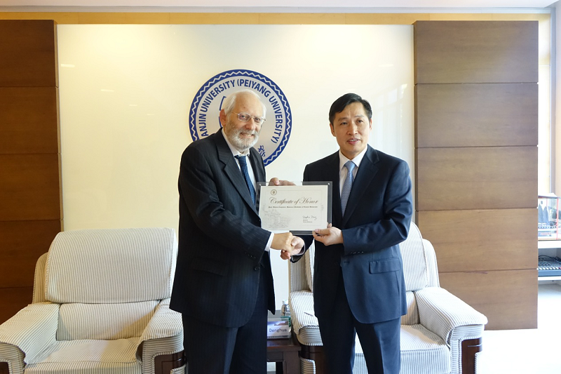 钟登华向Alberto Carpinteri教授授予天津大学名誉教授荣誉证书及木牌。