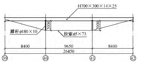射击馆屋盖结构通过结构构件直接表达建筑造型来实现建筑意图,屋盖采用主次梁结构有檩钢结构屋盖,檩条为主次檩体系,建筑纵向钢梁为直线形次梁,建筑横向钢梁为弧形主梁;有较大的跨度部分则采用弦支梁结构体系;针对部分悬挑较大的钢梁,采用在梁下部加辅助撑杆的结构形式。