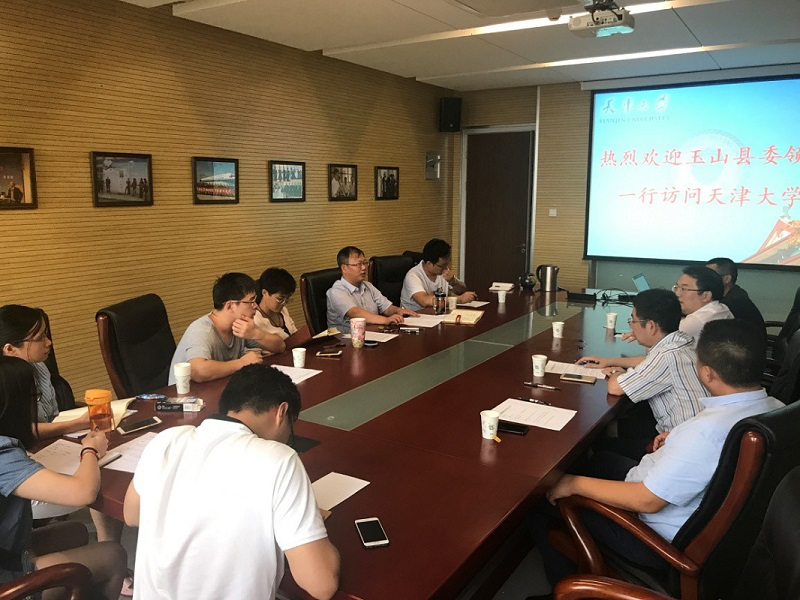 本站讯(通讯员 杜桂月)为推进天津大学与江西省玉山县在生物质能源与生态环境领域的进一步合作,江西省玉山县政府代表团于8月27日访问环境学院。江西省玉山县人民政府县长徐树斌、玉山县政府办公室主任韩元青、天津大学环境科学与工程学院院长陈冠益教授、马文超老师以及相关环保企业的企业代表等出席此次会议。
