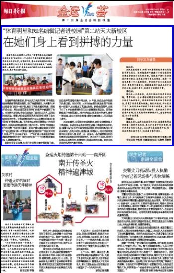 本站讯(每日新报记者 白冬梅 刘峦 郭强 宫伟 摄影王健 学生记者 李松林 刘鑫慧 彭松臣 毛茜琳 周静辉)继前天晚上走进理工大学后,“体育明星和知名编辑记者进校园”活动昨天上午走进位于海河教育园,拥有百年历史的天津大学。与首站不同,参加活动的两位本届全运会金牌得主与天大同学们都为交流活动做足了功课。值得一提的是,许多“走进全运会”的学生记者也纷纷赶到天大,来和两位冠军见面。