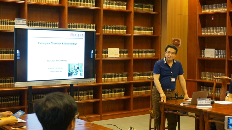 日前,第87期青椒学术沙龙在北洋园校区郑东图书馆四层日新书斋如期举行。天津大学生命科学学院黄金海老师带来题为《病原微生物及免疫》的讲座,本次沙龙吸引了来自各单位的几十名青年教师和学生参加。