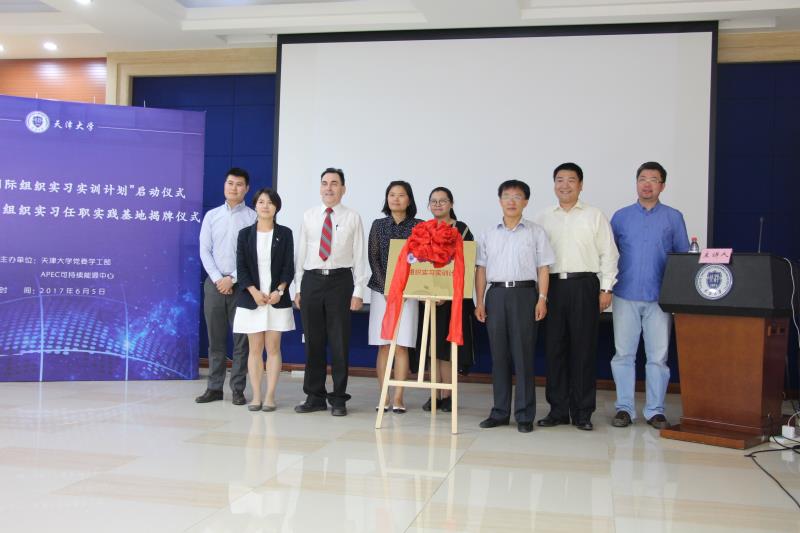 本站讯 (通讯员 郑文博)6月5日,“天津大学国际组织实习实训计划”启动仪式暨APSEC国际组织实习任职培训实践基地揭牌仪式在卫津路校区科学图书馆一层报告厅举行。原能源宪章秘书处主任Steivan Defilla、联合国环境规划署项目经理谭迪文、全球能源互联网发展合作组织专员尹博,天津大学副校长张凤宝以及APEC可持续能源中心主任朱丽等出席了仪式。