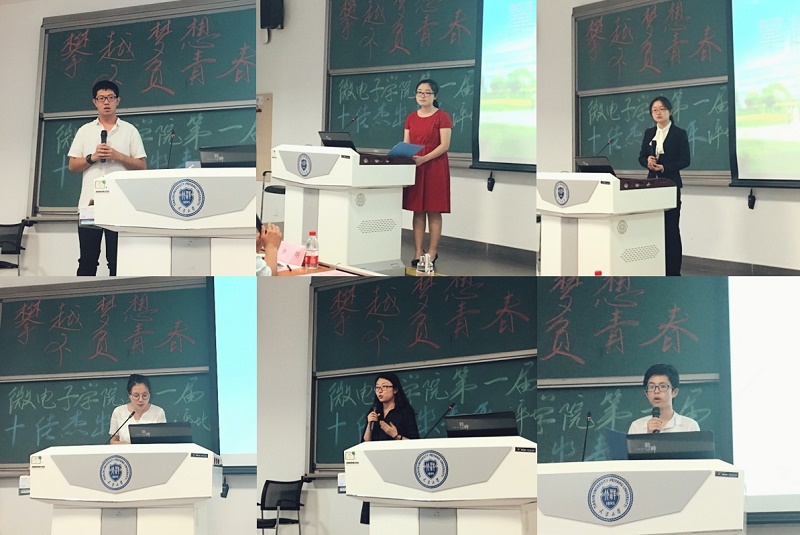 朱步凡、张泽欢、李雅倩、罗浩文、丁皓南、王雨亭、田成龙、李星辰、张鸿飞、夏璠当选为第一届微电子学院“十佳杰出青年”,谭刚、周意遥、徐亮、李伊湄获得微电子学院“十佳杰出青年”提名奖。