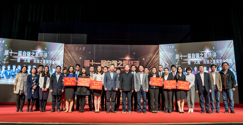 崔鸿修和王寒共同为获得本次评选最佳人气奖、天津大学第十一届自强之星和提名奖的15名学生颁发了奖杯和奖学金。